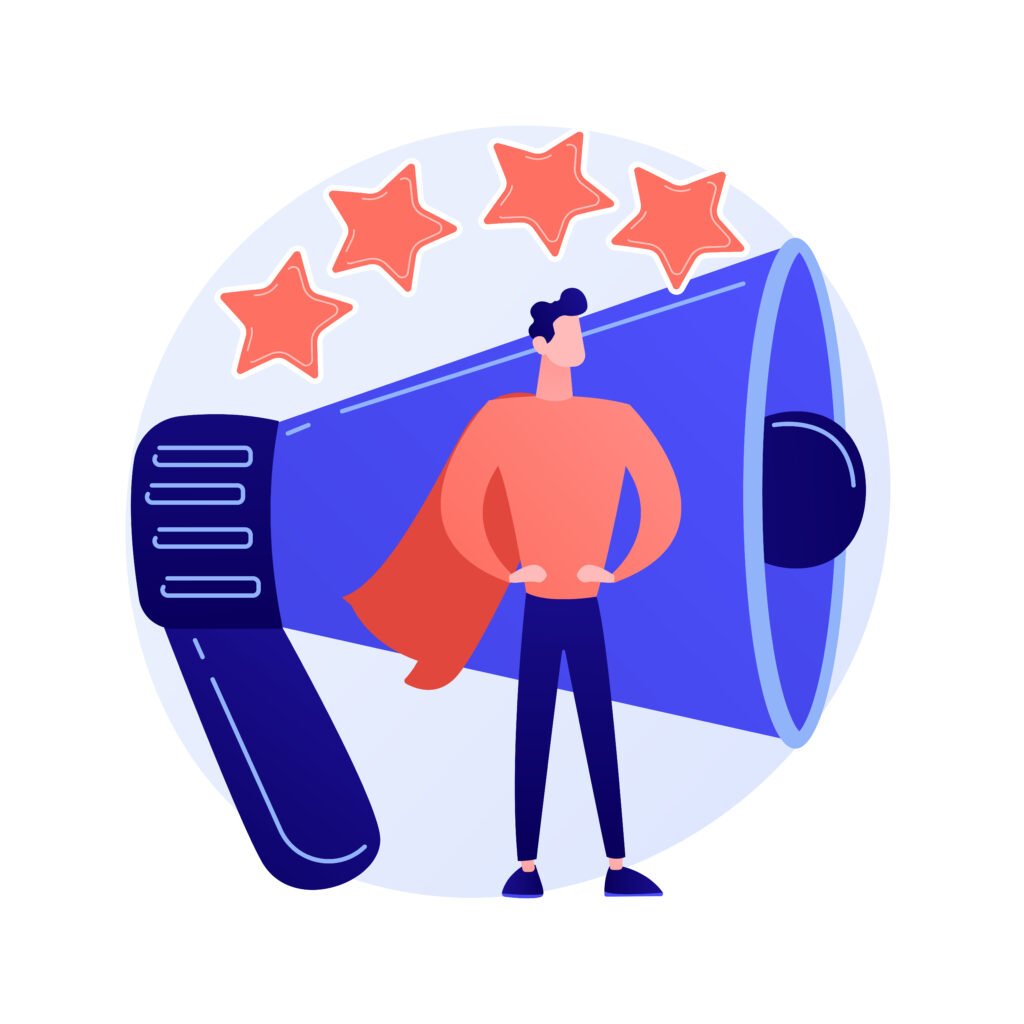 PR and marketing campaign. Propaganda, news, broadcasting. Public relations agency. Megaphone and ranking stars isolated flat design element. Vector isolated concept metaphor illustration